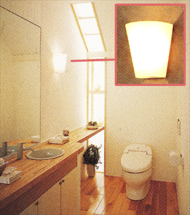| 周囲が暗くなってからトイレに入るとふわっと点灯。出ると自動消灯するので消し忘れがなく省エネになるセンサ付きの照明。 |