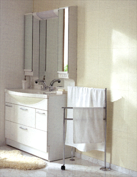 | 76cm〜92cmまでの間口にぴったり納まる簡単施工のキャビネット。収納もタップリ。 |